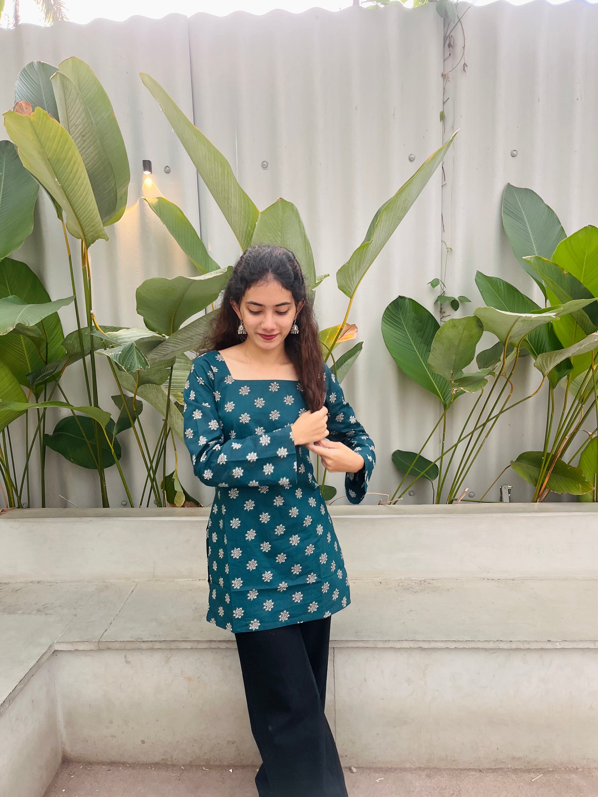 Crafted in premium Jaipur print cotton, this short kurti is designed to offer comfort without compromising on style. The breathable, lightweight fabric makes it ideal for everyday wear, while the structured silhouette adds a refined touch.